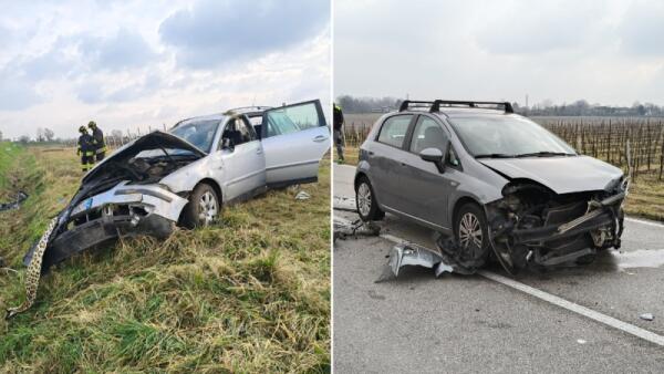 Incidente stradale a Follina in via Castelletto: vigili del fuoco in azione per liberare un conducente incastrato.