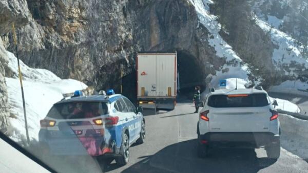 Sbanda con il camion e resta in bilico tra la strada e il pendio
