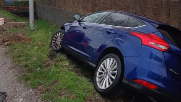 Auto si ribalta nel fosso pieno d'acqua: conducente con il braccio incastrato sotto