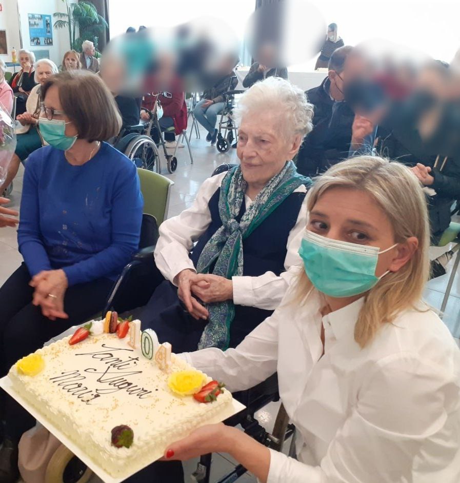 La signora Maria ha trascorso gran parte della sua vita lavorando come operaia presso la cartiera Burgo. A 65 anni ha iniziato una nuova fase di vita sposando il signor Mario Moretto, che in seguito ha assistito per alcuni anni proprio nella struttura di Villa delle Magnolie per motivi di salute. Nel 2008 anche Maria ha avuto la necessità di trasferirsi presso lo stesso Centro Servizi. Qui, nel 2020, ha raggiunto l’importante traguardo dei 100 anni e successivamente tutti gli altri, fino a quello dei 104 dell'altro ieri. La nipote Bianca ha accompagnato con la sua presenza il lungo soggiorno di Maria a Villa delle Magnolie.