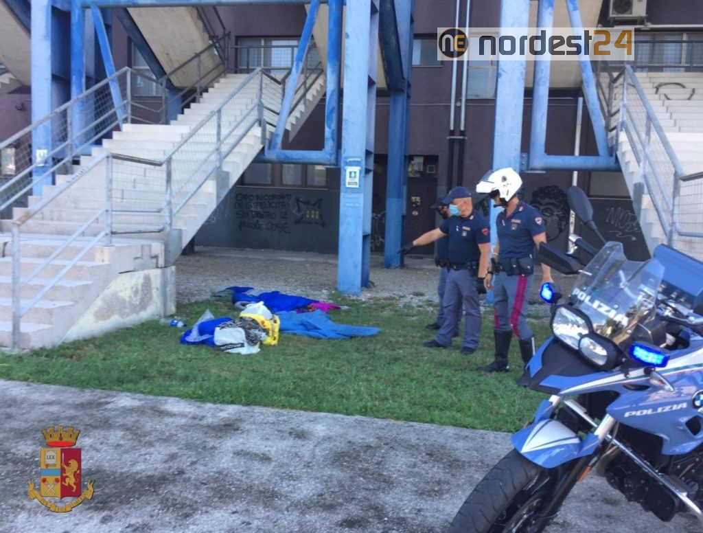 Nell’ambito dei dispositivi di controllo e vigilanza del territorio, nella giornata di ieri martedì 18 agosto perveniva una segnalazione alla Sala Operativa della Questura di Pordenone, in ordine a qualche bivacco, che da pochi giorni erano presenti lungo le scale di sicurezza del Palazzetto dello Sport di Pordenone, sito in via F.lli Rosselli.