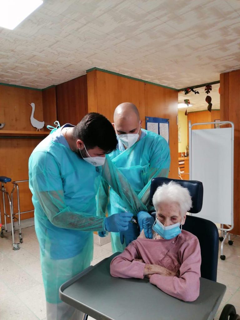 Il direttore sanitario Paolo Goss e gli infermieri della struttura hanno somministrato l’antidoto ai 55 ospiti e 5 operatori che erano stati vaccinati più di sei mesi fa. Tra questi anche la signora Aikaterini Stamatiadou di 101 anni.