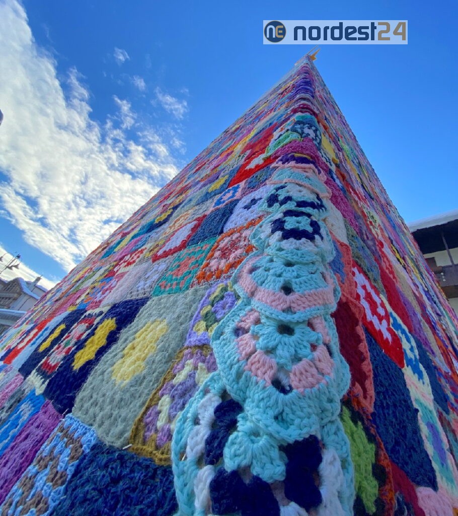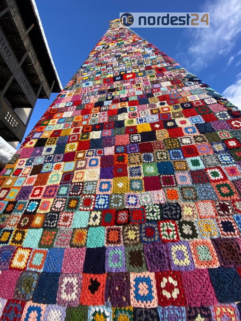 Questo albero, alto circa otto metri, è realizzato con più di quattromila mattonelle lavorate all’uncinetto. E fin qui niente di particolare, non è infatti l’unico.