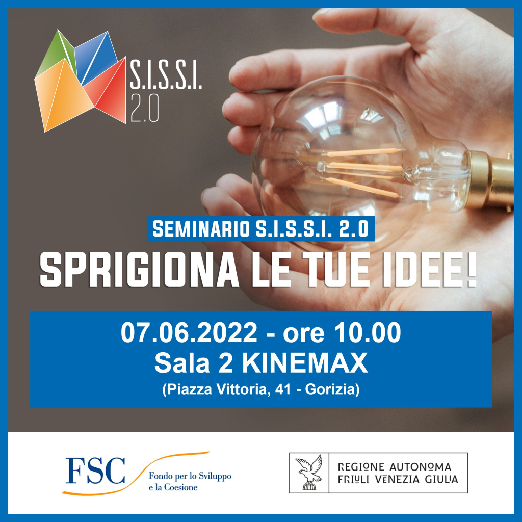 S.I.S.S.I. 2.0 – Sistema Integrato di Servizi per lo Sviluppo Imprenditoriale del FVG, è un progetto finalizzato alla promozione della cultura imprenditoriale e alla creazione di impresa e lavoro autonomo. Vuole informare in modo trasparente e semplificato i cittadini del territorio regionale sulle opportunità offerte da IMPRENDERÒ [in] FVG, sensibilizzandoli sul valore aggiunto della programmazione europea a sostegno dello sviluppo produttivo innovativo; coinvolgere e attivare in modo appassionato i giovani, le donne, gli studenti, i disoccupati e i professionisti, e altre categorie di lavoratori svantaggiati. Per maggiori informazioni: www.sissi.fvg.it