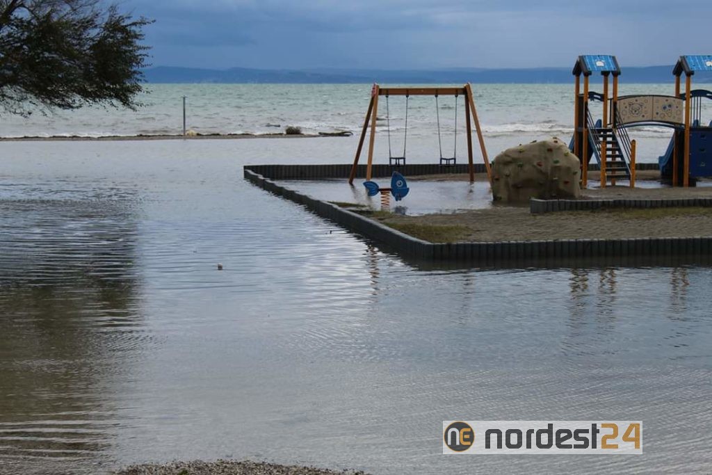 Le incessanti precipitazioni e l'alta marea hanno contribuito ad allagare anche la zona di Marina Julia a Monfalcone.