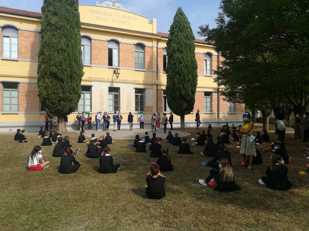 Il monumento ai caduti realizzato nell'ampio parco della scuola ha fornito lo spunto per una riflessione sul sacrificio dei giovani di quel tempo, in onore dei quali furono piantati gli alberi dell'attuale giardino, che in qualche modo sono in grado di ispirare anche i bambini di oggi, gli allievi dell'istituto intitolato al duca d'Aosta Emanuele Filiberto.