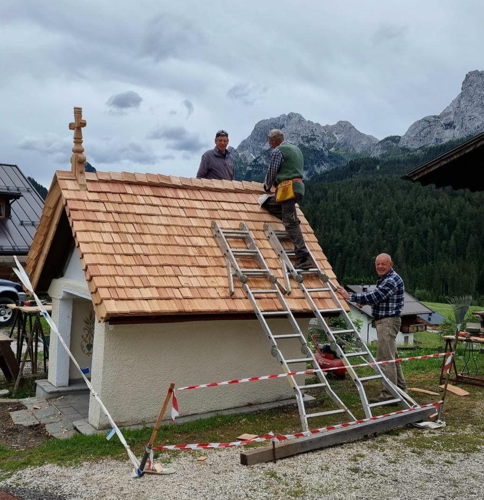 Al termine dei lavori sul tetto, Ivano, anch’egli sappadino, apporrà il pannello solare per l’illuminazione eco sostenibile della cappellina.