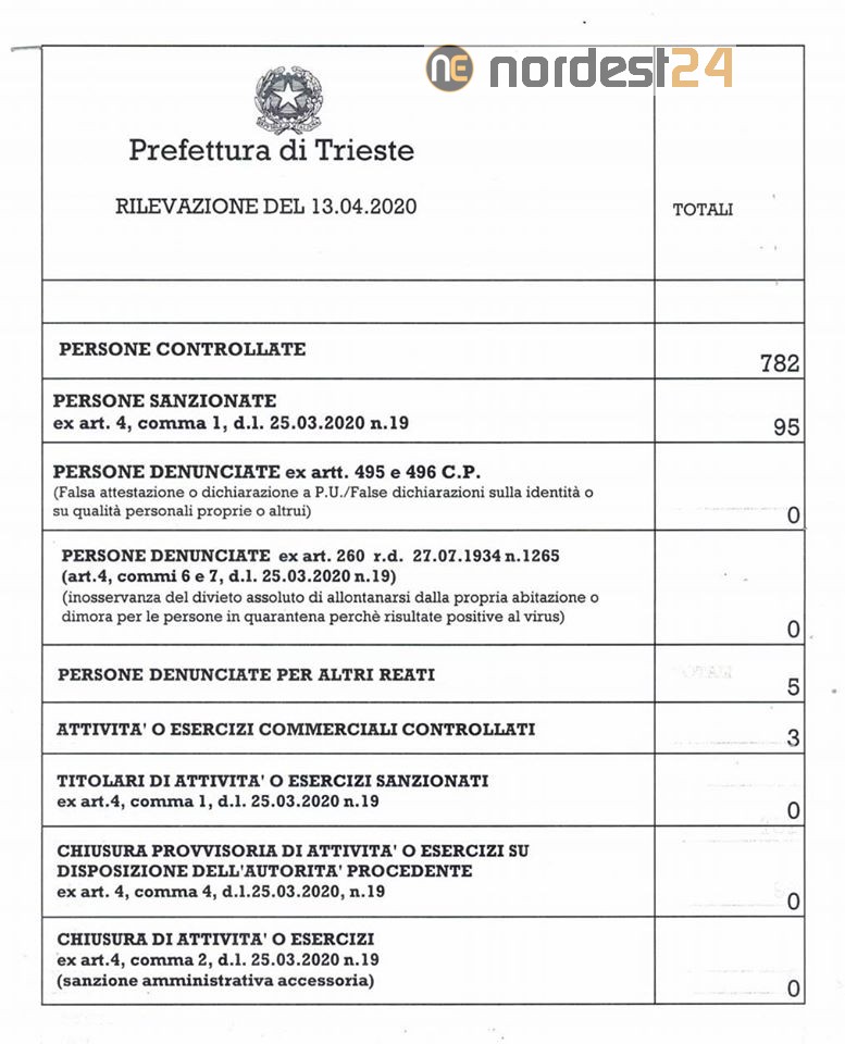 I dati della Prefettura di Trieste.