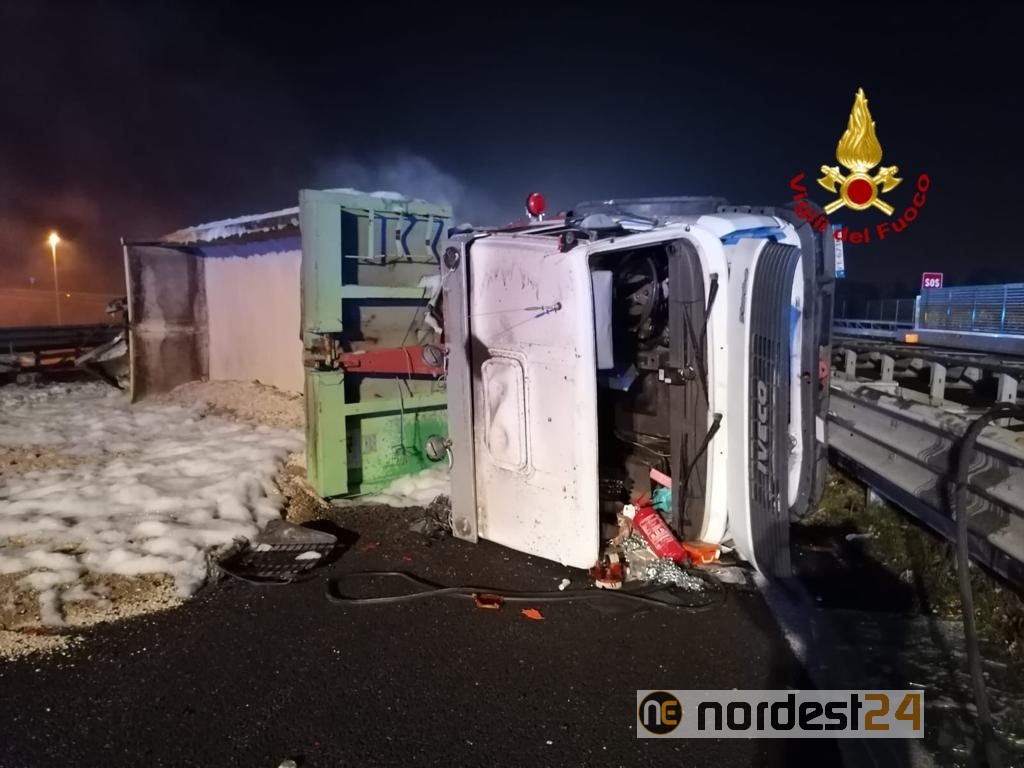 L’autocisterna slovena stava procedendo in direzione Milano quando per cause di accertamento da parte della polizia stradale ha prima urtato un carrello di segnalazione lavori e poi un camion di alcuni operai che stavano effettuando dei lavori lungo l’autostrada per poi incendiarsi.