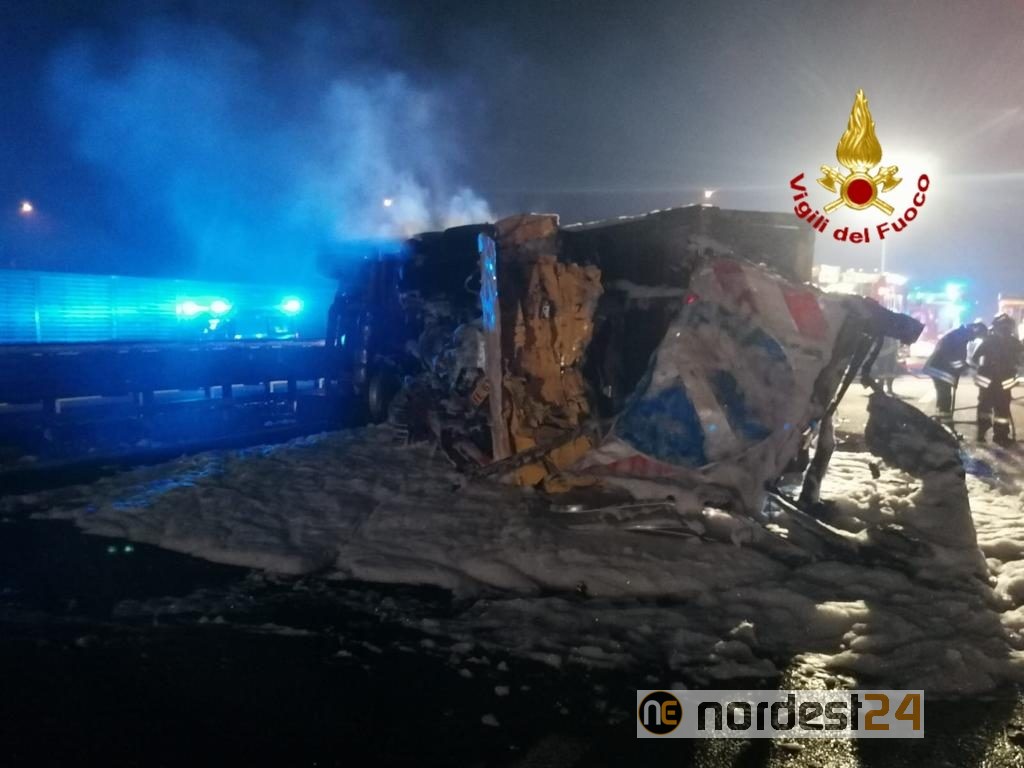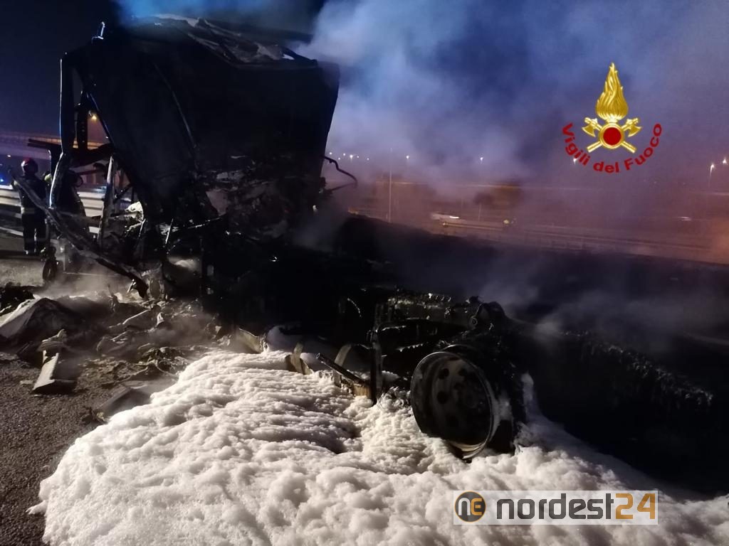 A4, autocisterna travolge gli operai al lavoro e si incendia: un morto carbonizzato