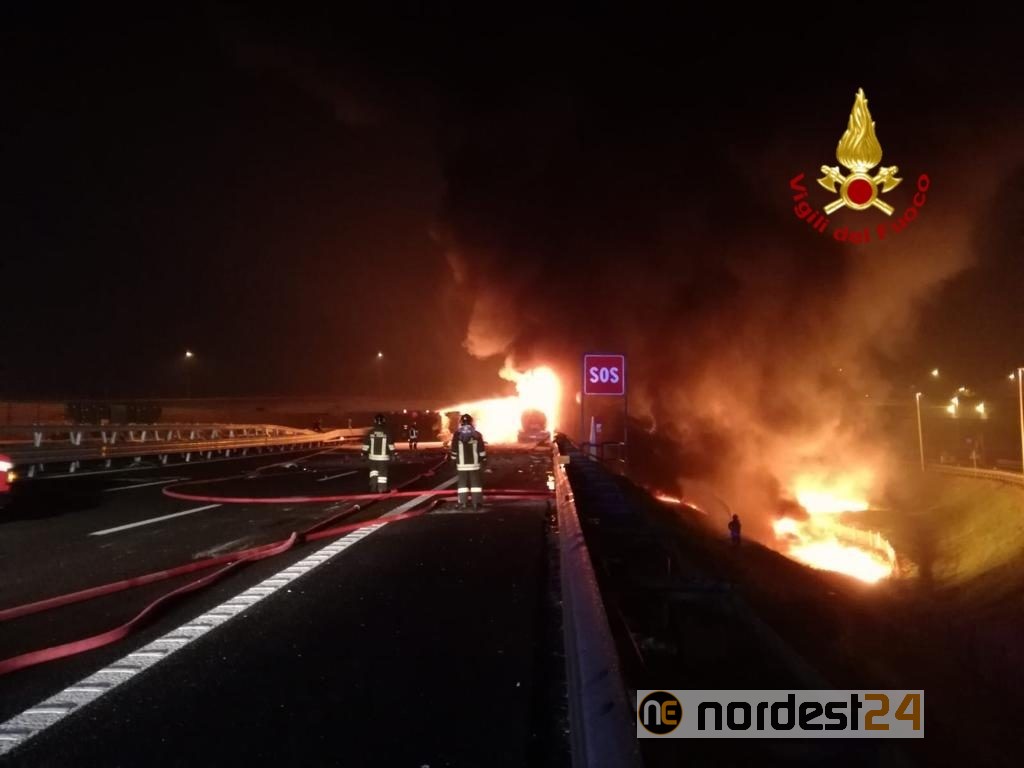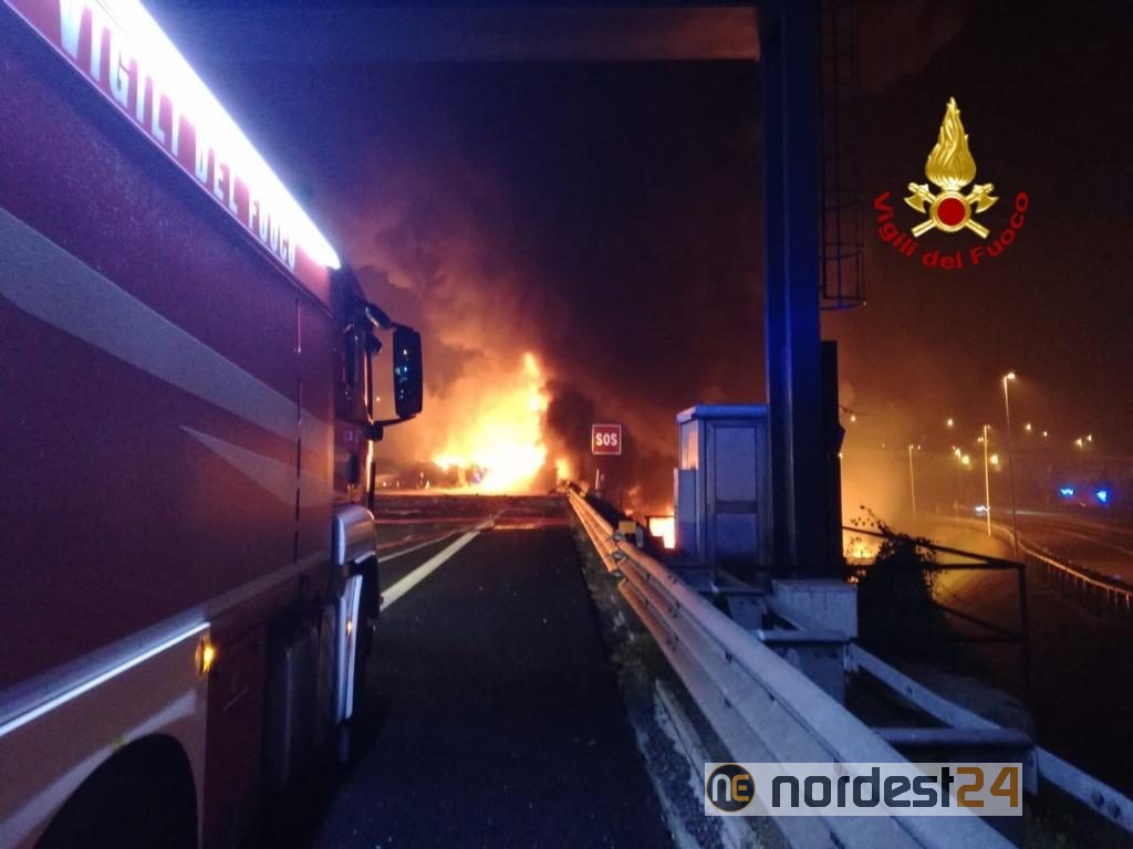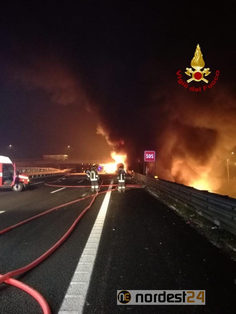Un quarto d’ora dopo la mezzanotte i vigili del fuoco sono intervenuti in autostrada A4 tra i caselli di Padova est e Ovest al km 361+900 per l’incendio di autocisterna di liquidi infiammabili che pri...