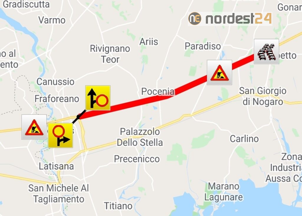 Attualmente risulta chiusa l'entrata a Latisana, direzione Venezia.