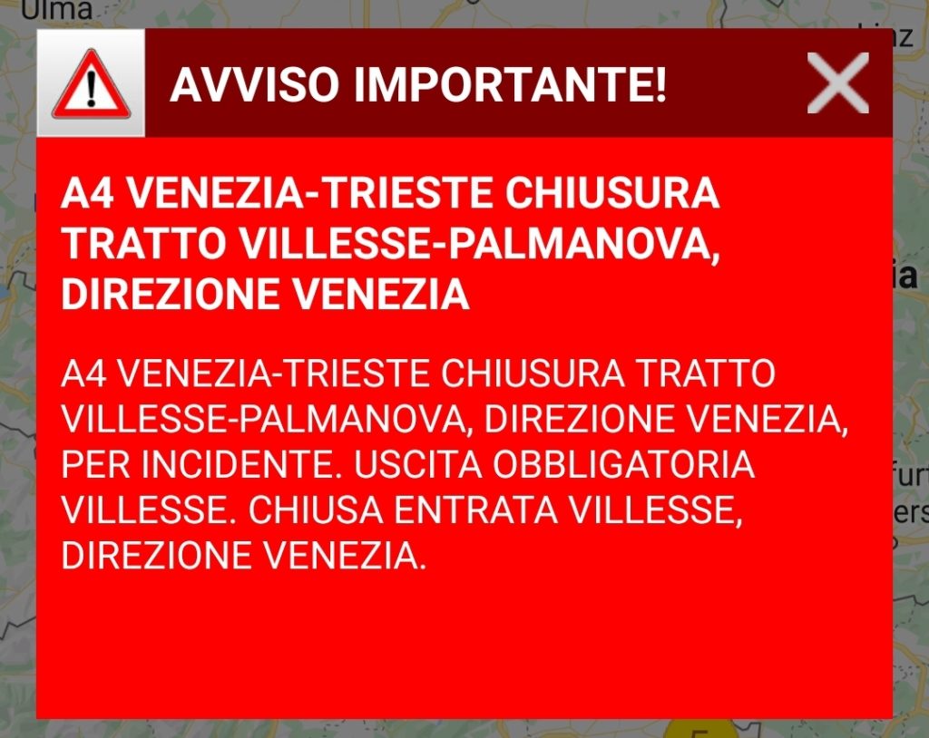 Poco prima delle 10,00 di oggi, giovedì 09 giugno, è stato chiuso il tratto autostradale della A4 Villesse – Palmanova in direzione Venezia a causa di un incidente che ha coinvolto un veicolo leggero.