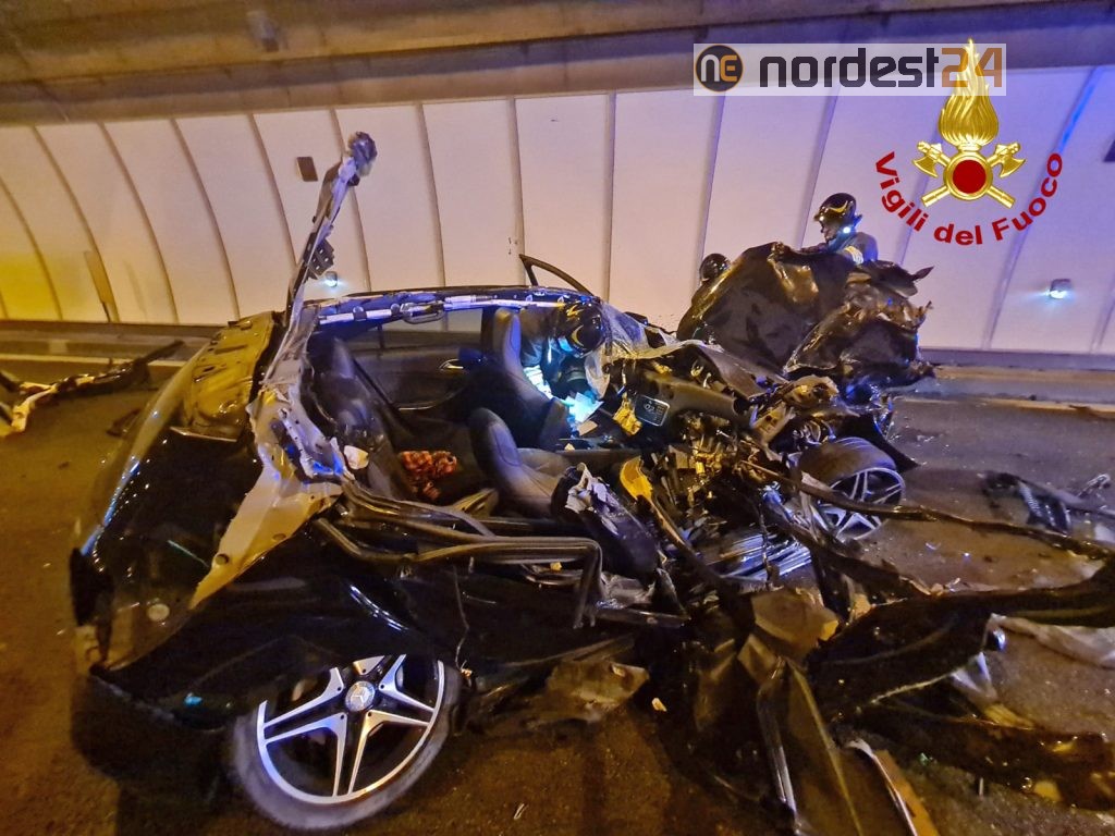 A4, scontro in galleria tra auto e mezzo pesante: grave un 22enne