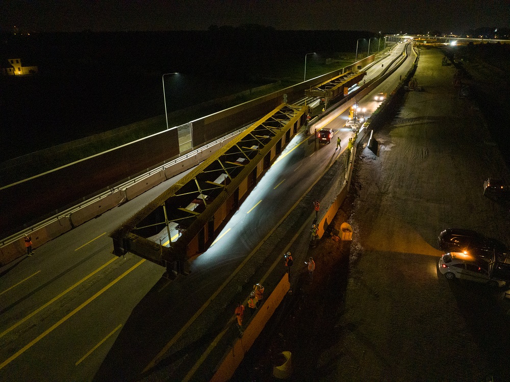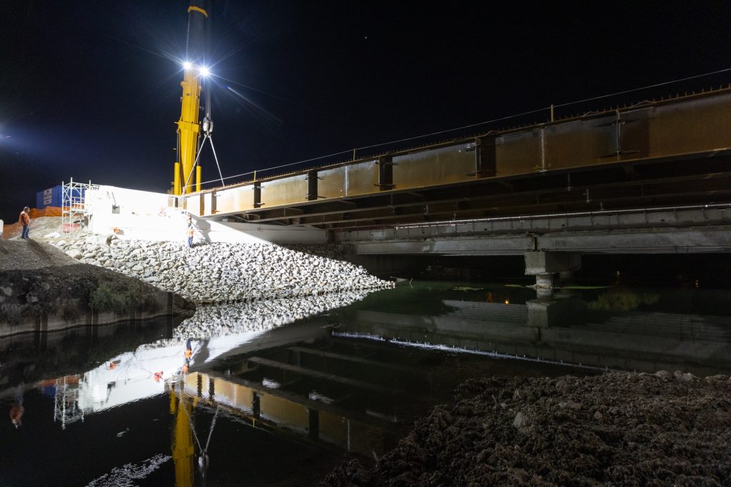 Nella notte tra mercoledì 31 agosto e giovedì 1° settembre è stato varato il ponte sul fiume Lemene sulla carreggiata ovest (direzione Venezia).