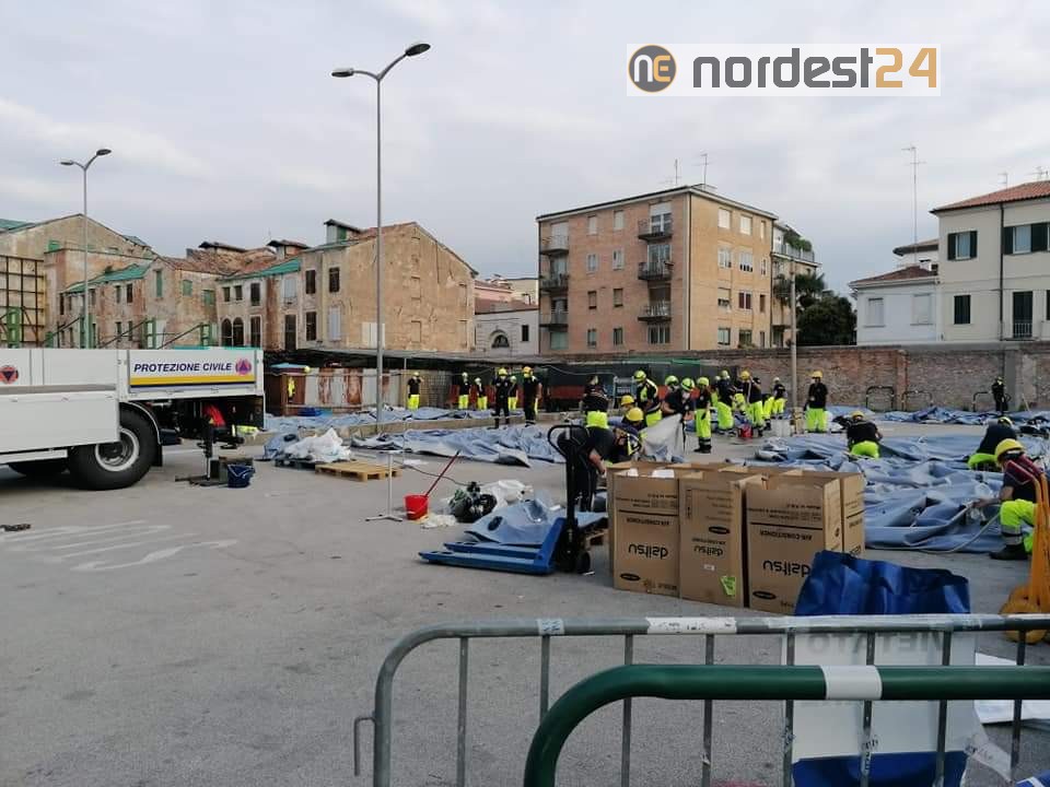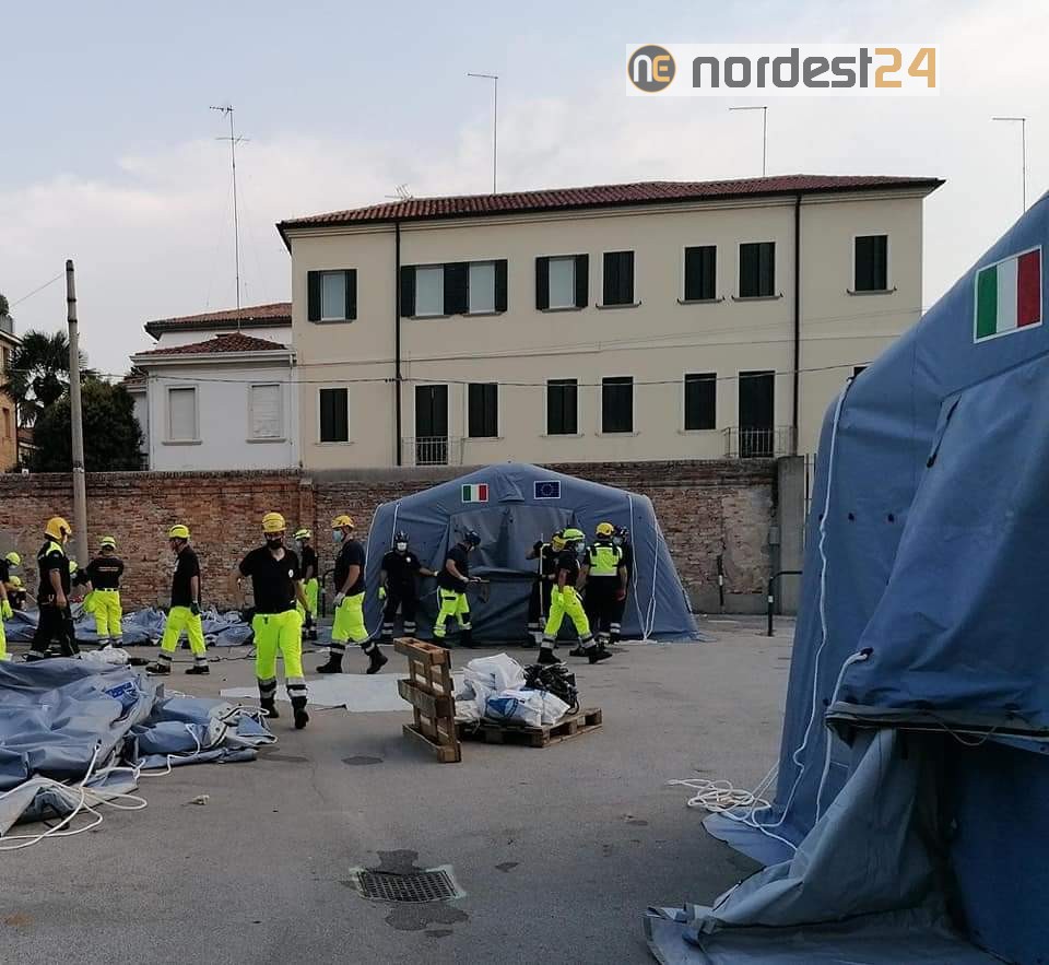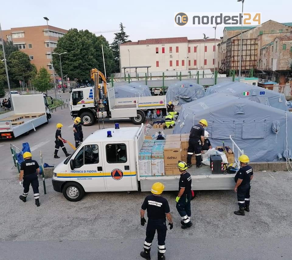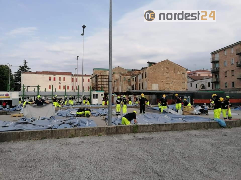 Oggi 11 luglio 2020 i volontari della Protezione Civile hanno proceduto allo smontaggio delle 11 tende che erano state montate presso l'ospedale civile di Padova.