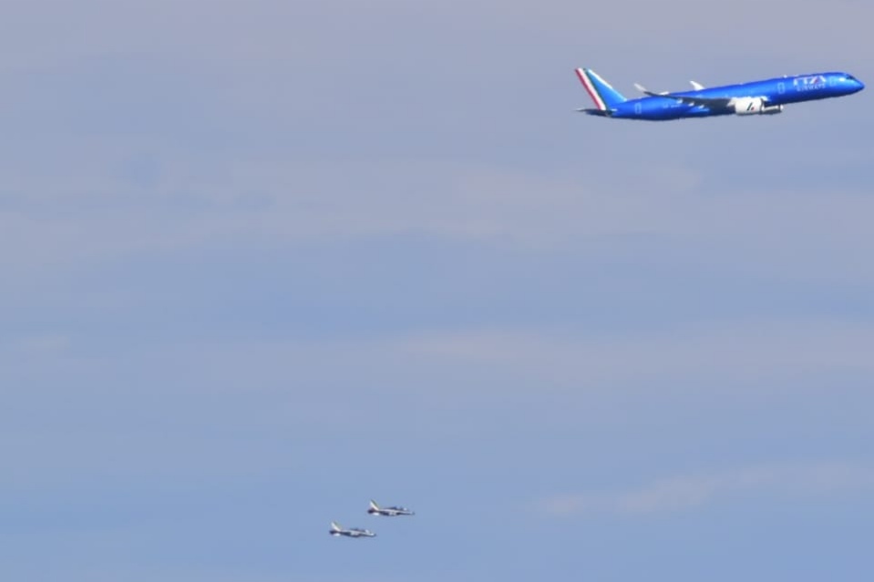 Attimi di apprensione e curiosità nel pomeriggio di oggi, lunedì 22 agosto 2022, nei cieli del Friuli Venezia Giulia per un airbus Ita Airways che per oltre un’ora, con due velivoli Mb-339 (utilizzati dalle Frecce Tricolori) ha svolto una attività addestrativa pianificata.
