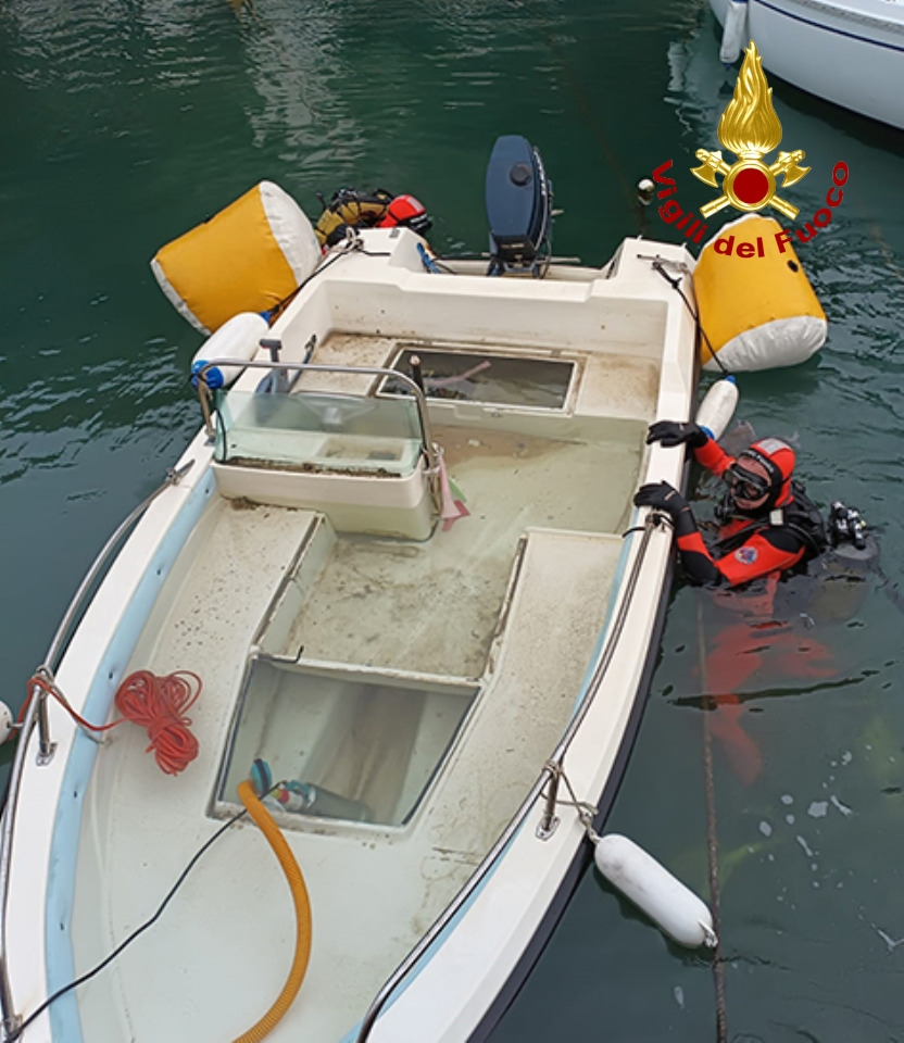 Affonda una piccola imbarcazione: intervento dei sommozzatori