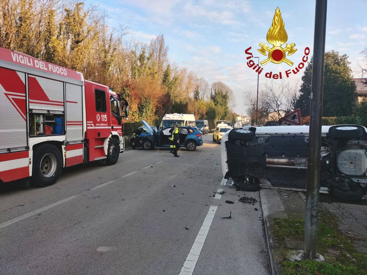 ALBIGNASEGO – Mattinata di interventi dei soccorsi a seguito di un incidente stradale tra due auto avvenuto in via Don Milani, dove un’auto, a seguito dello schianto, è rimasta ribaltata sul fianco.