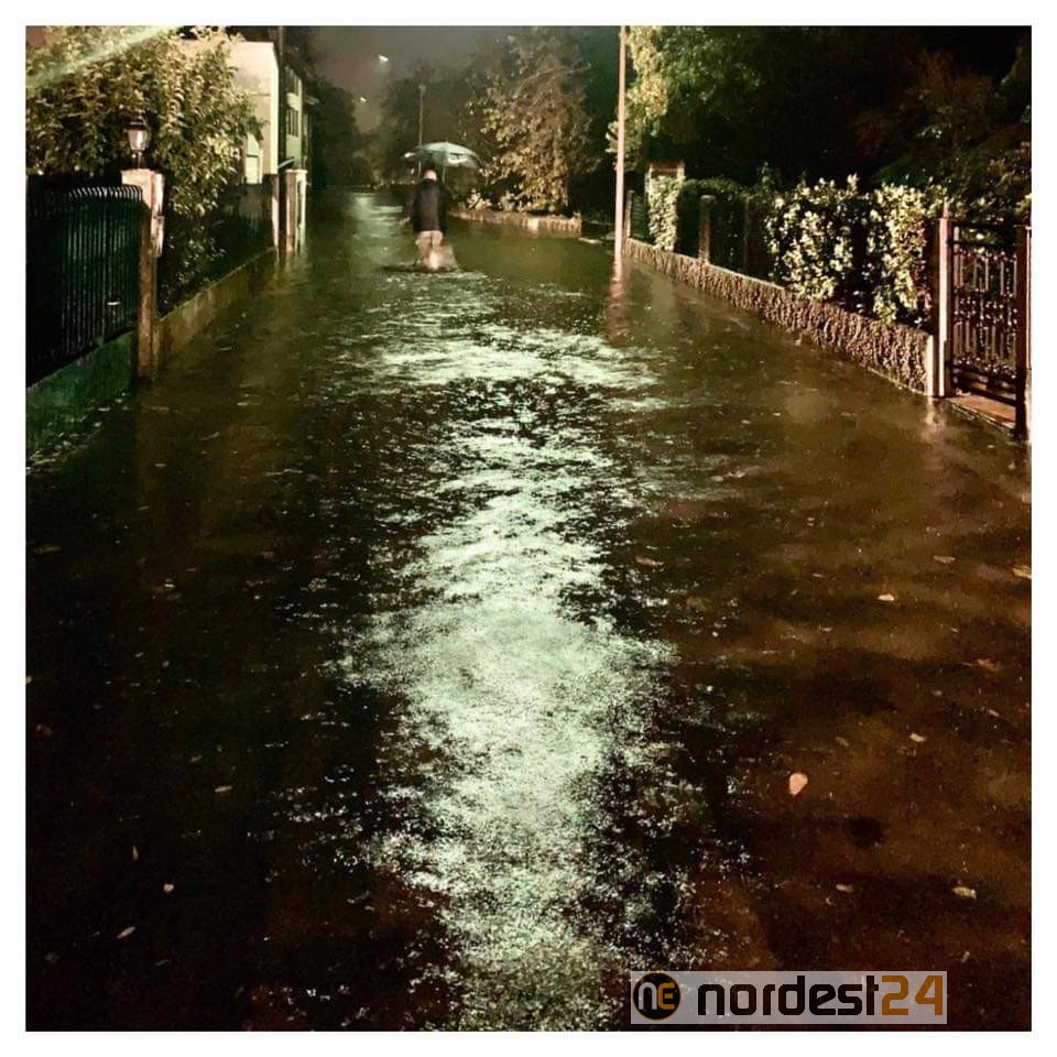 L’acqua in questo caso si sta riversando sulle vie laterali (fra tutte via Fratelli Rossetti).