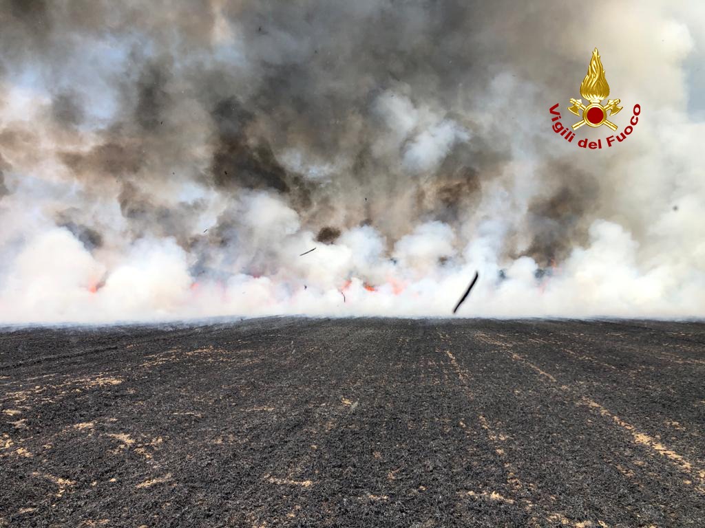 Allarme siccità, incendio distrugge un campo di orzo