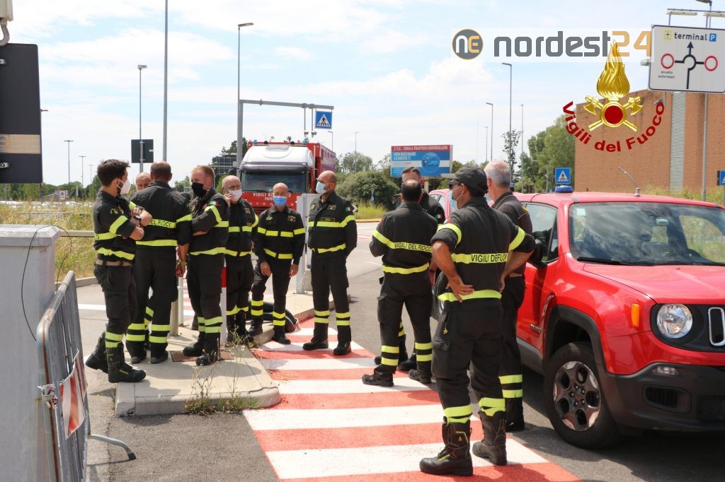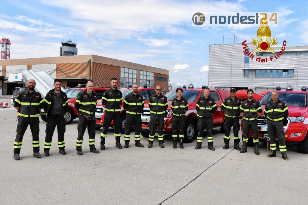 A salutare i vigili del fuoco in partenza il direttore interregionale dei vigili del fuoco Loris Munaro e il comandante vicario di Venezia Calogero Barbera.