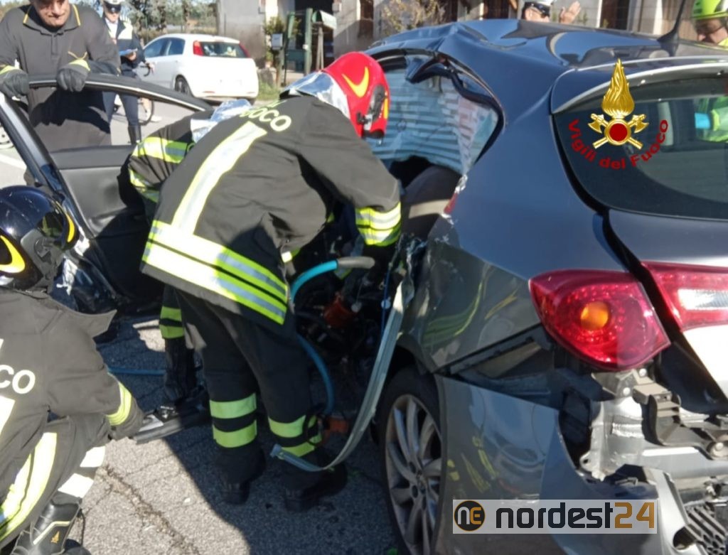 I pompieri accorsi da Lonigo hanno estratto il conducente rimasto incastrato al posto guida di un’Alfa Romeo Giulietta, che dopo essersi scontrato con il furgone con a bordo due uomini e poi carambolata per scontrarsi con un’Audi A3 condotta da una donna.
