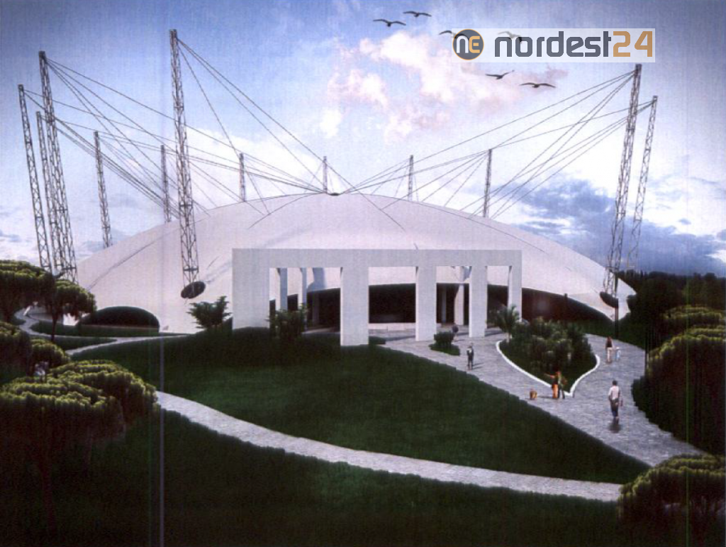Il progetto prevede il mantenimento dell’attuale edificio compatto e unitario, il parco e l’accesso architettonico. Superato l’attuale colonnato architravato si potrà poi entrare in un nuovo spazio coinvolgente sotto l’imposta di nuove tribune in un’enorme sala di spettacolo costituita da una imponente cupola in telo a doppia membrana, sostenuta da piloni esterni con tenditori in acciaio.