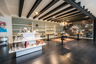 Tra i tantissimi oggetti che si possono trovare ci sono i calici di vetro e quelli di cristallo, la porcellana tradizionale e quella Bone-China, i complementi di arredo come vasi, busti, lampadari e sedie, l’attrezzatura destinata alle cucine di ristoranti anche stellati. Tra i marchi della porcellana ci sono Richard Ginori 1735, Vista Alegre 1824, Churchill, Tognana Professional, Table Top Professional e Le Coq Porcelain, mentre nella cristalleria sono presenti i marchi Riedel, Mun Delux Brand Venezia, Spiegelau, Nachtmann, Luigi Bormioli, Rocco Bormioli, Nude e Stolzle. Ci sono anche i tavoli e i complementi di arredo del marchio friulano Tabula, che crea pezzi unici con l’uso di assi di tronchi grezzi. Al primo piano dello show room c’è infine l’allestimento di un giardino o patio esterno con l’esposizione di sedute, tavolini e complementi di arredo innovativi del marchio italiano Plust.