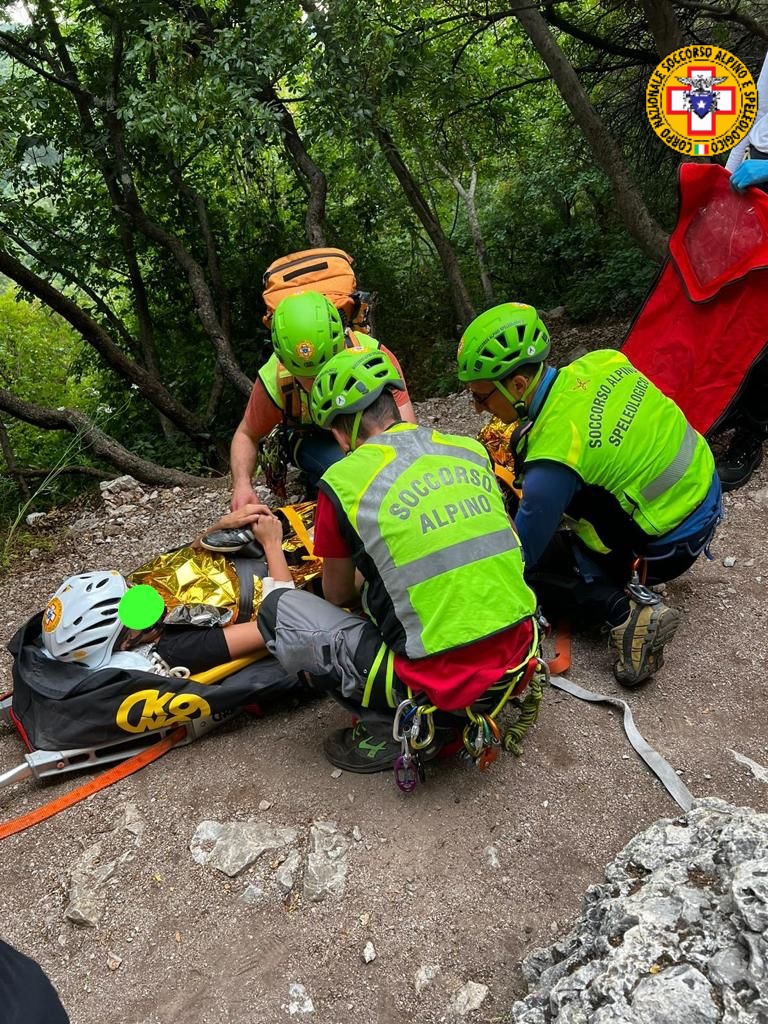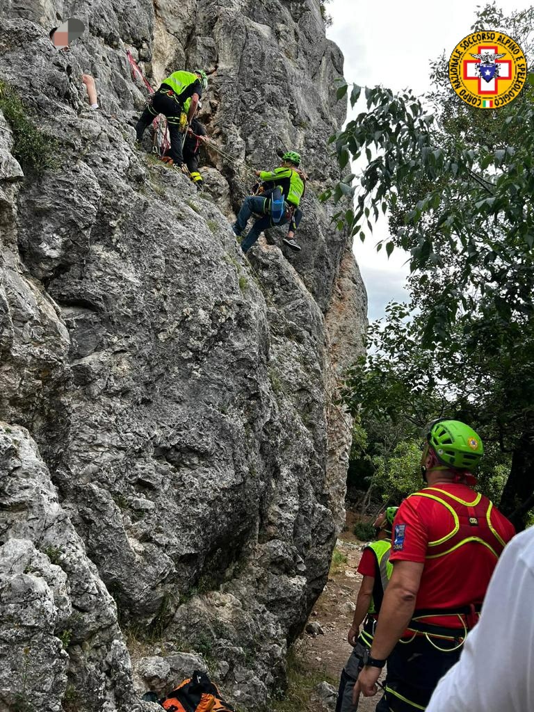 La donna è stata raggiunta in parete in arrampicata, le è stato immobilizzato l'arto e, valutate le sue condizioni, è stata calata al suolo con un tecnico soccorritore imbragata con il triangolo di evacuazione (pannolone).