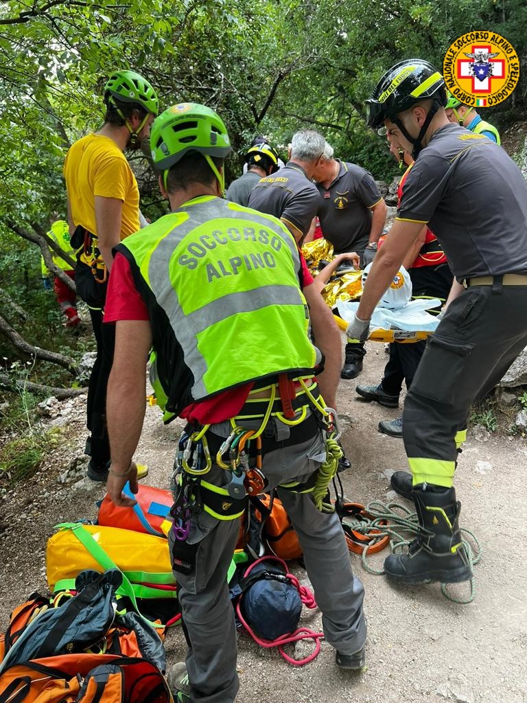Una volta a terra è stata messa nella barella spinale dei Vigili del Fuoco e quindi nella barella portantina del Soccorso Alpino per essere condotta per un centinaio di metri di dislivello fino all'ambulanza. L'intervento si è concluso alle 20.30.