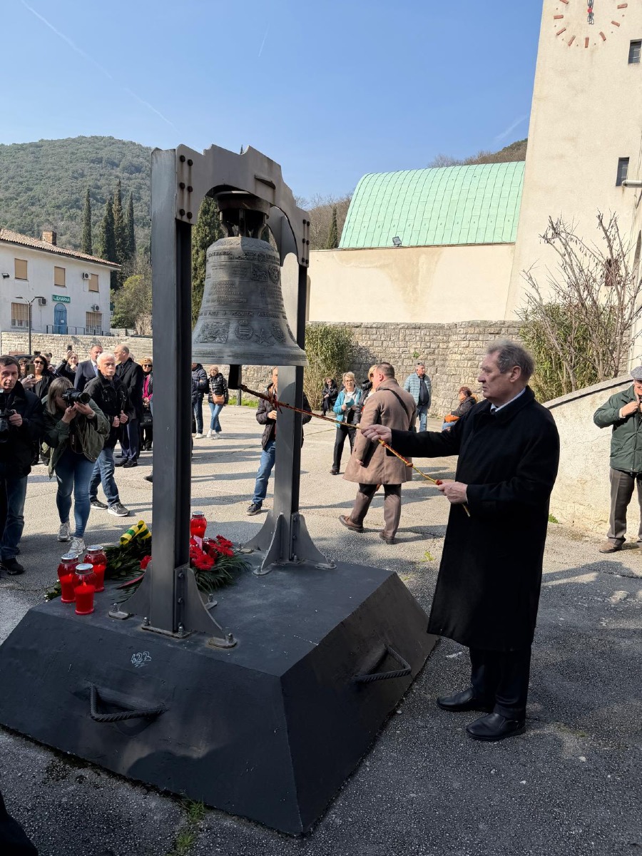 Particolarmente toccante il momento culturale affidato agli alunni della Scuola Elementare “Ivan Batelić” di Arsia e al Coro della Comunità Italiana “Giuseppina Martinuzzi” di Albona, diretto dalla maestra Denana Levak. A seguire, l’esecuzione dei 185 rintocchi della campana Alma Mater Dolorosa ha scandito uno dei momenti più intensi della mattinata, in un silenzio carico di commozione”.