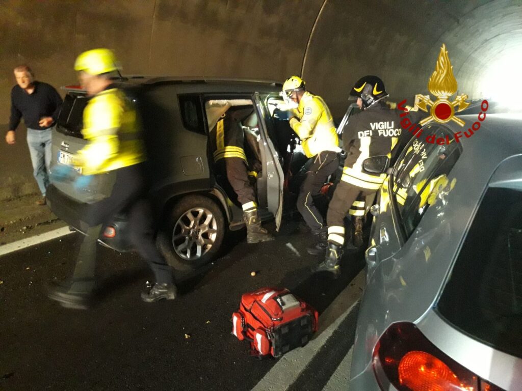 Arsiè, scontro tra 3 auto in galleria: una persona ferita, incastrata tra le lamiere