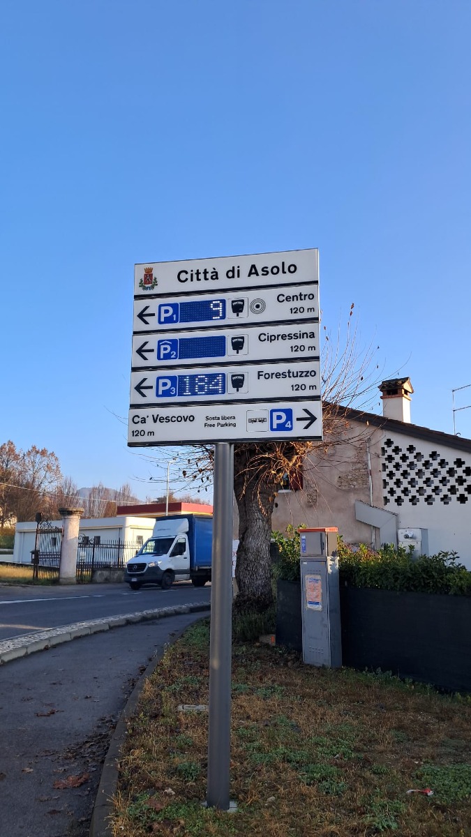 Asolo attiva il nuovo sistema di Smart Parking con pannelli intelligenti per sosta, viabilità e accesso alla città.