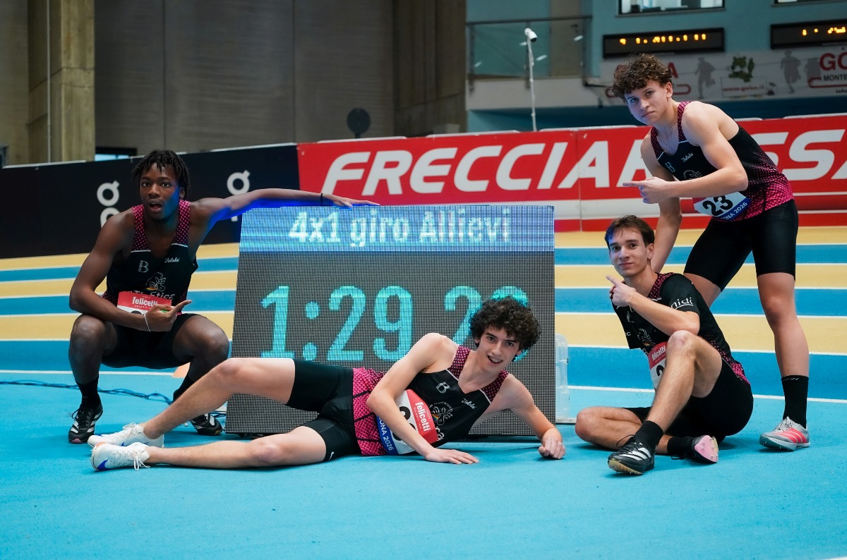 Ai Campionati Italiani di categoria indoor, disputati nel weekend al PalaCasali di Ancona, il quartetto di ATL-Etica, formato da Filippo Antonio Tineo, Gabriele Faganello, Amoussa Jean Garbo e Tommaso Chichi, ha corso in 1’29”23, abbattendo di oltre un secondo il limite di 1’30”33 siglato dall’Atletica Livorno nel 2020.