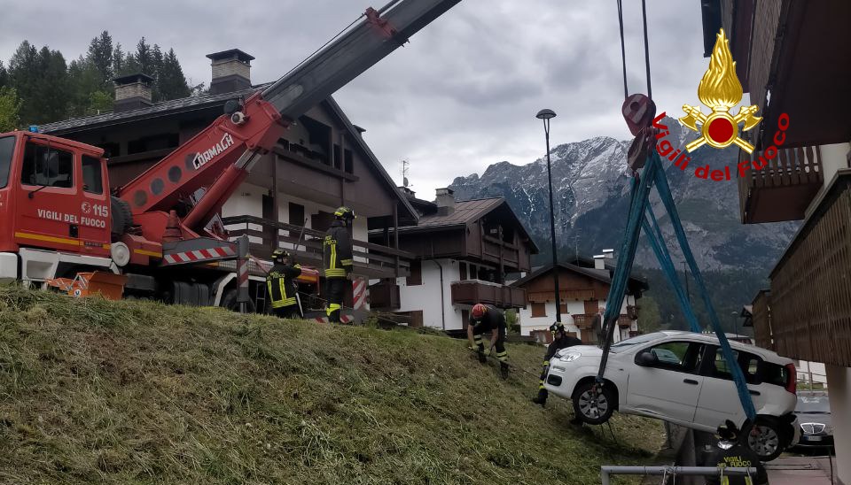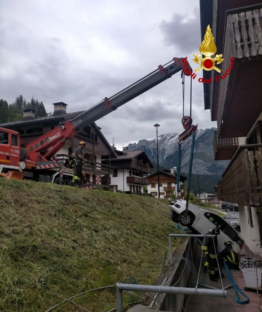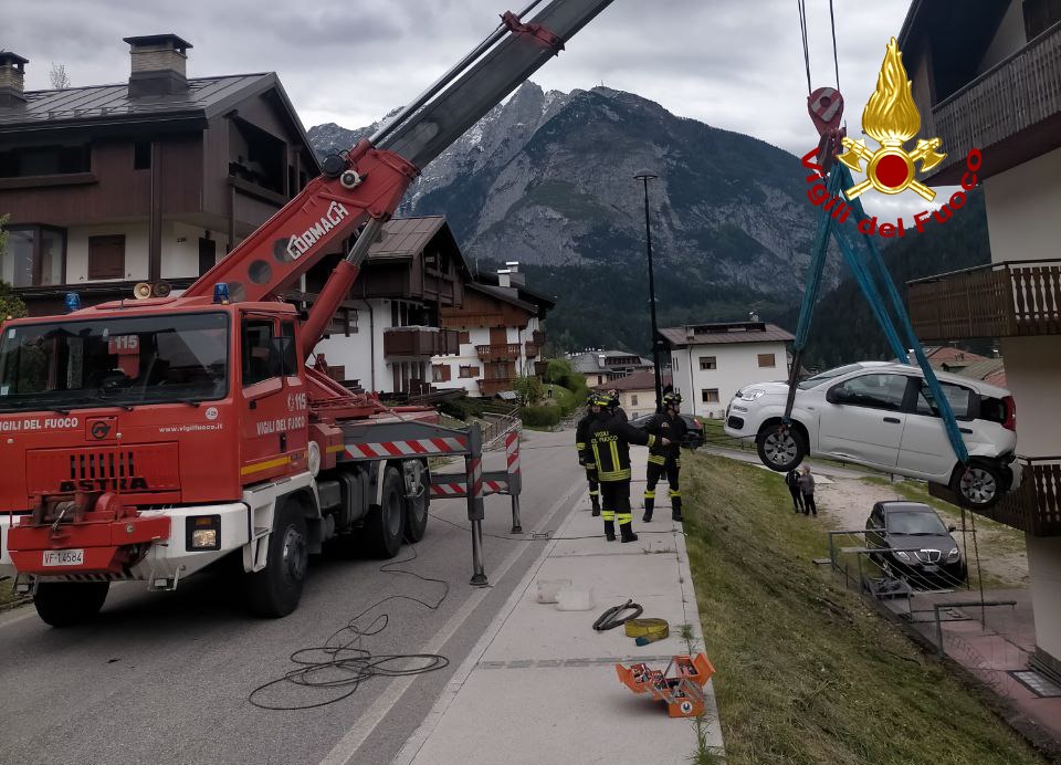Auronzo di Cadore, auto precipita nel cortile di una casa: miracolato il conducente