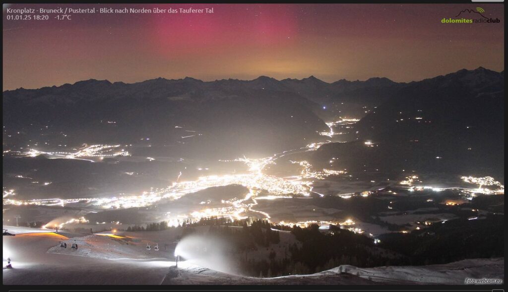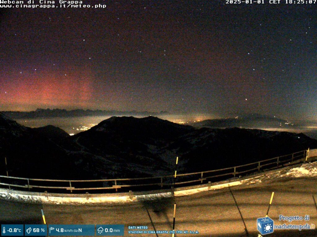 CORTINA D'AMPEZZO (BELLUNO) – Le aurore boreali sono il fenomeno naturale che continua a incantare e affascinare gli spettatori in tutto il mondo. Oggi, 1° gennaio 2025, il cielo sopra l'Arco Alpino ha regalato uno spettacolo unico, visibile chiaramente dalle 5 Torri di Cortina d'Ampezzo e da altre località circostanti, in particolare verso nord. Il fenomeno è iniziato intorno alle 18:30, e per diverse ore, l'intero paesaggio montano è stato illuminato dalle spettacolari luci danzanti delle aurore boreali. WEBCAM IN DIRETTA