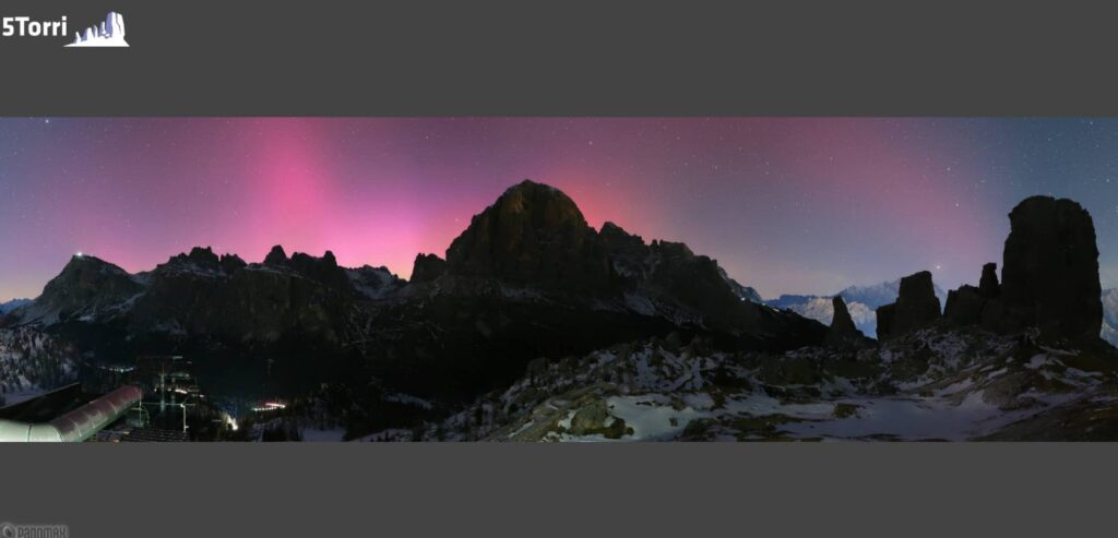 Le webcam posizionate nelle vicinanze delle 5 Torri hanno catturato immagini mozzafiato del fenomeno, mostrando la magia dei colori verdi e viola che hanno dipinto il cielo sopra le montagne. Grazie alle immagini fornite dalle telecamere e ai contributi degli utenti locali, che hanno condiviso le loro fotografie, è stato possibile seguire in tempo reale l'evolversi dell'evento.