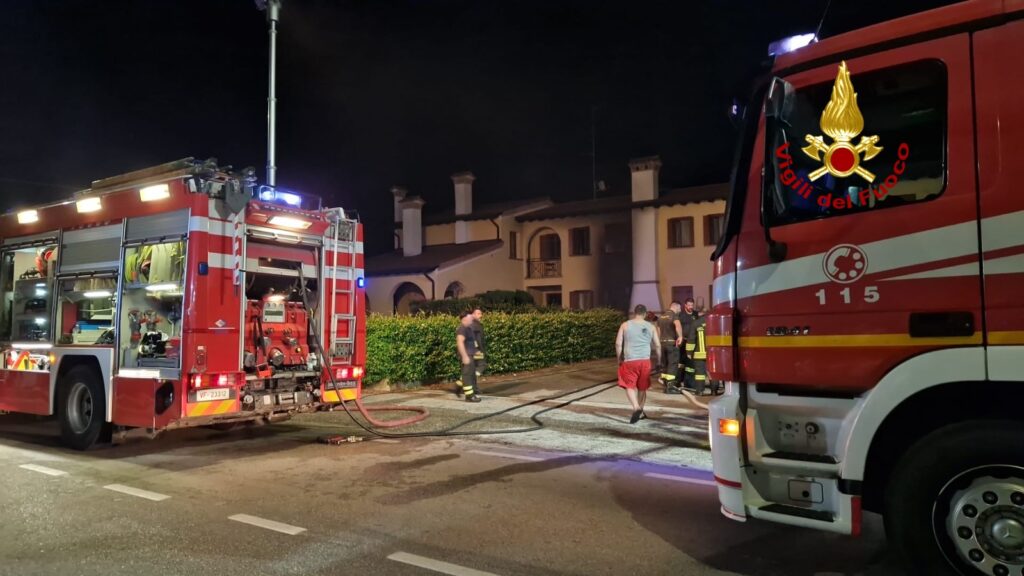 I vigili del fuoco arrivati da Portogruaro, Motta di Livenza, Mestre e Pordenone con due autopompe, un’autobotte, due autoscale e 16 operatori, hanno iniziato le operazioni di spegnimento dell’auto e del box, evitando l’estensione del rogo alle due palazzine oltre a portare in salvo la donna.
