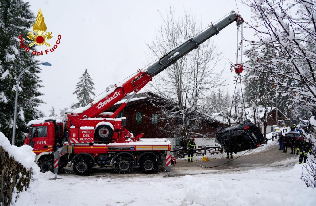 Cortina d’Ampezzo, auto fuori strada in via Pralongo: conducente liberato dai Vigili del Fuoco, area messa in sicurezza.