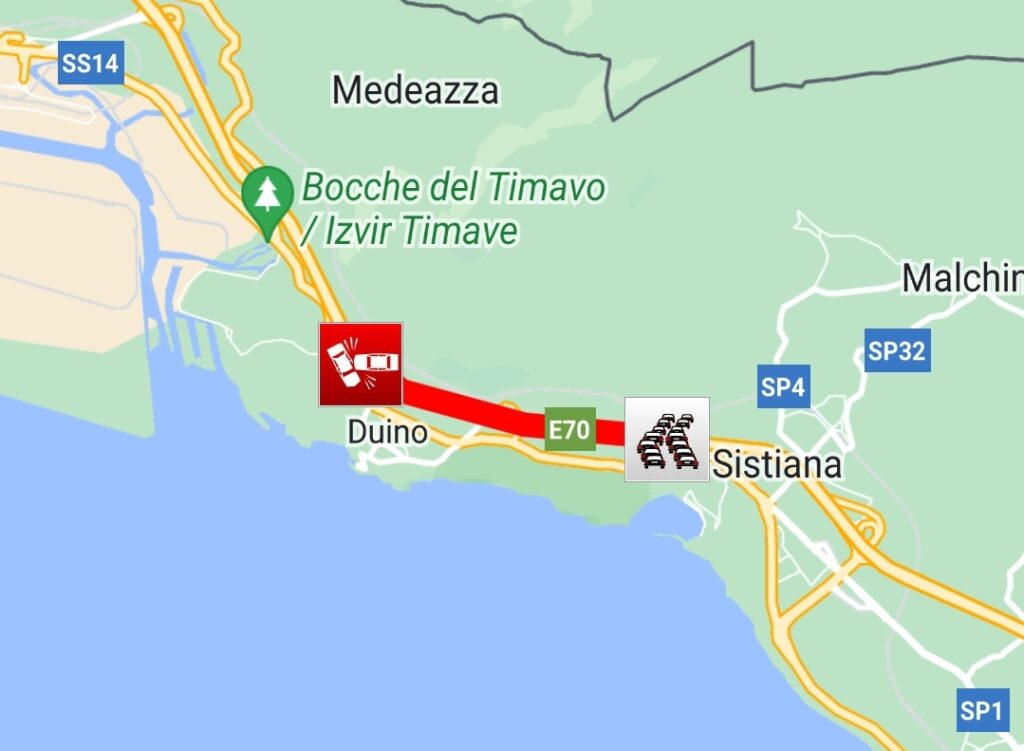 Un incidente, che vede coinvolto un veicolo leggero, sta bloccando il traffico nel tratto tra Duino e Monfalcone Est in direzione Venezia.