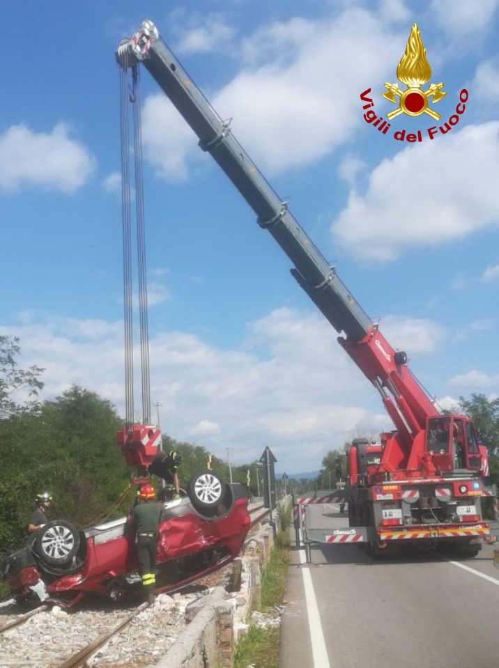 Auto si ribalta e finisce tra i binari. Linea bloccata tra Udine e Cividale