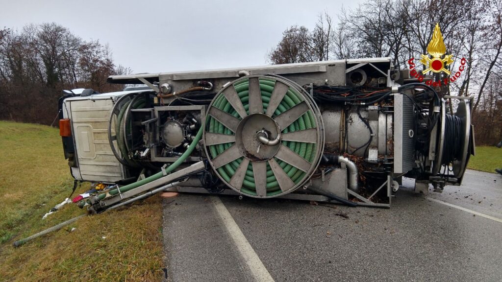 Alle 15:30, di lunedì, i vigili del fuoco sono intervenuti sulla SP 1 a Trichiana, una frazione del comune di Borgo Valbelluna in provincia di Belluno, per il rovesciamento di un’autocisterna per spurghi, dopo la perdita di controllo del mezzo da parte dell’autista, rimasto ferito.