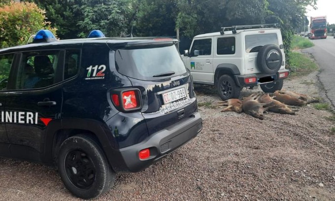 Nel corso della notte un automobilista in transito a Rovolon in provincia di Padova, ha investito un gruppo di 7 cinghiali: gli esemplari sono morti tutti sul colpo.