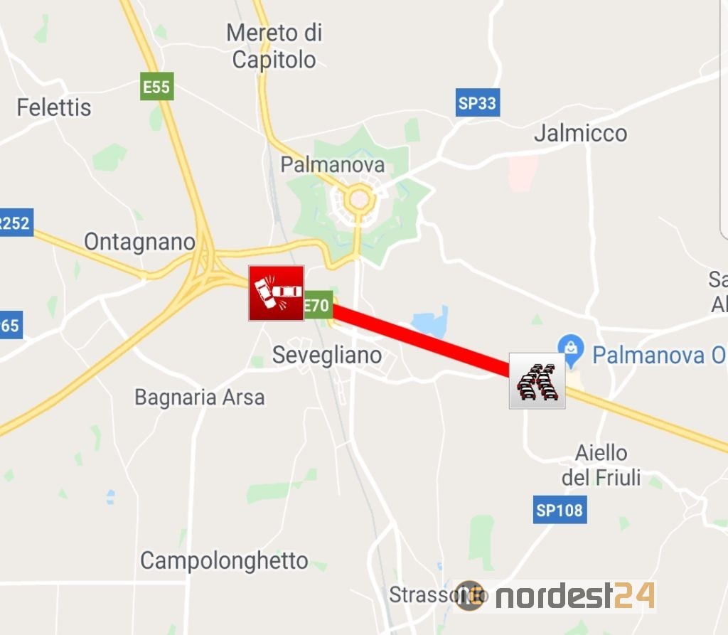 Autostrada, incidente tra Palmanova e Bivio A4/A23: un ferito