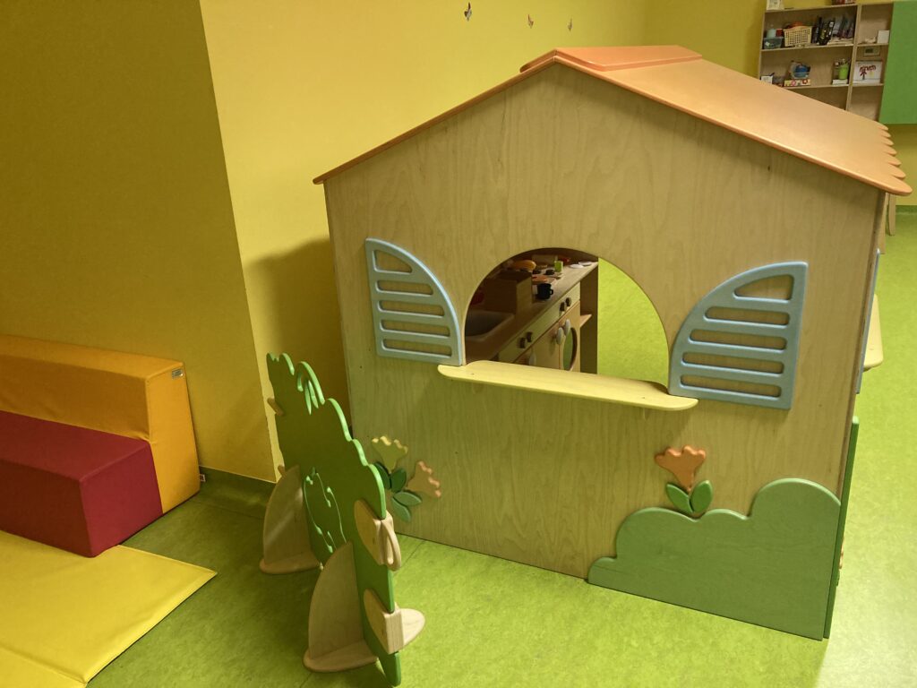 ABIO ha poi organizzato la sala d’attesa della Clinica Pediatrica per renderla a perfetta misura di una vera e propria area giochi: si tratta di una raffigurazione di un ambiente domestico con una piccola casetta arredata in legno, dei tavolini, sedie e divanetti a dimensione di bambino e una libreria dove riporre libri e giochi. Il valore del materiale di arredo donato è di circa 10.000 euro.