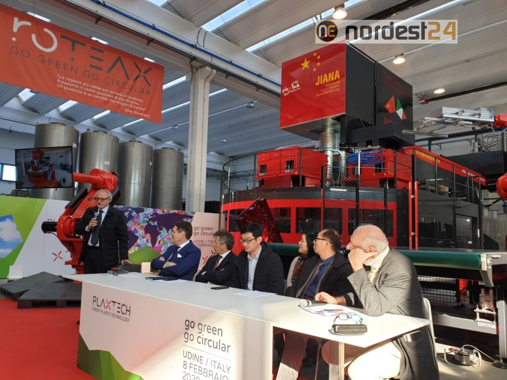 Sì è svolto stamane nello stabilimento di Roteax Go a Basaldella il convegno dal titolo “Roteax-Go, la Green Economy conveniente. Dalla Cina la ri-evoluzione Made in Italy della Circular Economy”, al quale sono intervenuti il direttore generale di ICCREA Banca Impresa Enrico Duranti, Andrea e Matteo Strizzolo ideatori del Sistema Roteax-Go, Andrea Razza, manager dell’azienda, il professore di ingegneria plastica all’università di Pechino di Tecnologia Chimica, Deng Daiwei, il manager dell’azienda cinese partner di Roteax-go Jiana Liu Songkui e il già ministro dell’ambiente Corrado Clini.