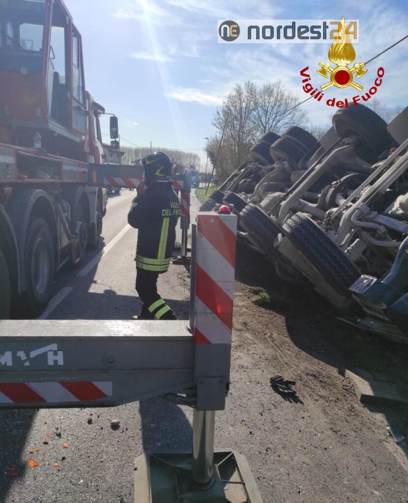 Betoniera si rovescia a Morgano: deceduto il conducente