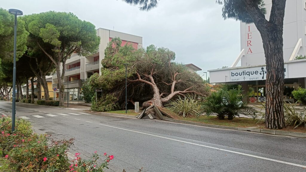 Caduta di un pino a Bibione, allerta in Corso del Sole