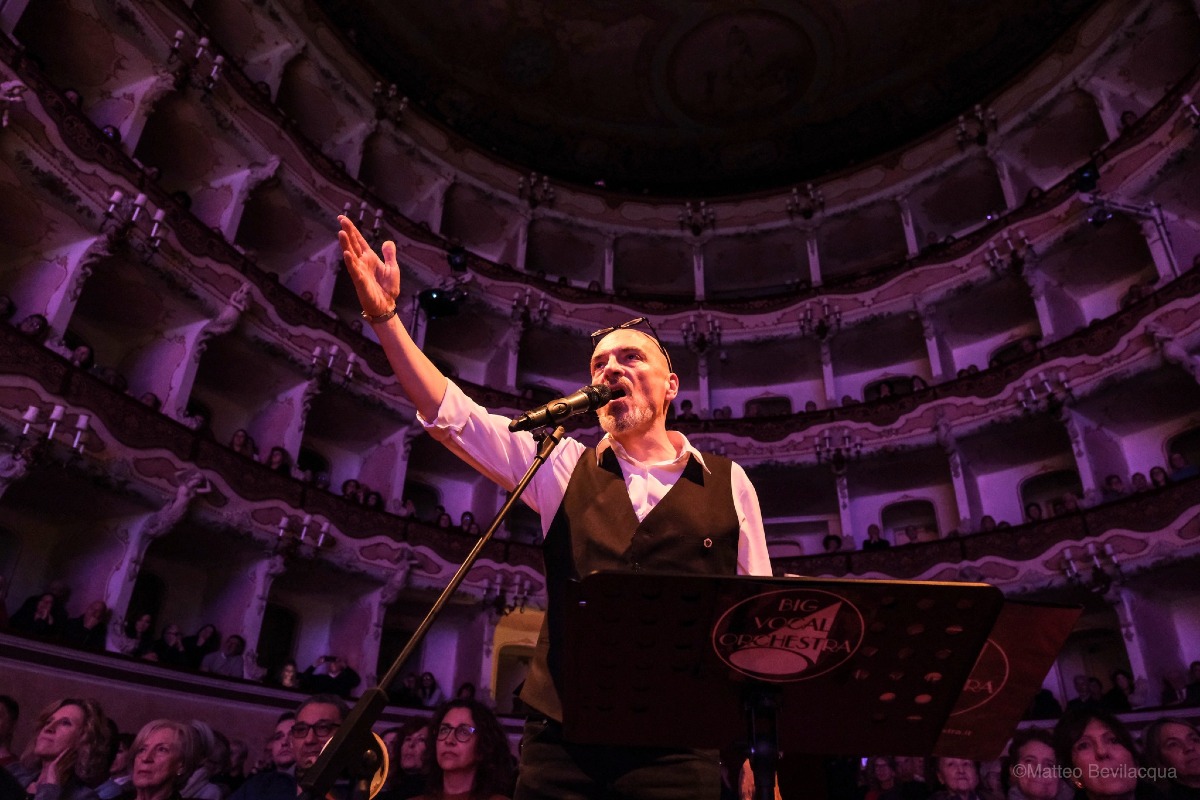 Con i suoi oltre 200 elementi, la Big Vocal Orchestra, diretta da Marco Toso Borella, è la più grande formazione vocale d’Italia, un vero e proprio fenomeno artistico nato a Venezia e celebre a livello nazionale. Un unico enorme coro che sorprende per l’effetto imponente delle voci e coinvolge il pubblico grazie a un repertorio originale e imprevedibile, interpretato con grande impatto scenico ed emotivo.